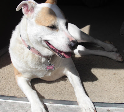 Vegas was a three month puppy when I got her from the San Diego Humane Society. They said she was a Collie mix, born in June, 2003. Some time has passed, she last weighed in at 82 pounds.